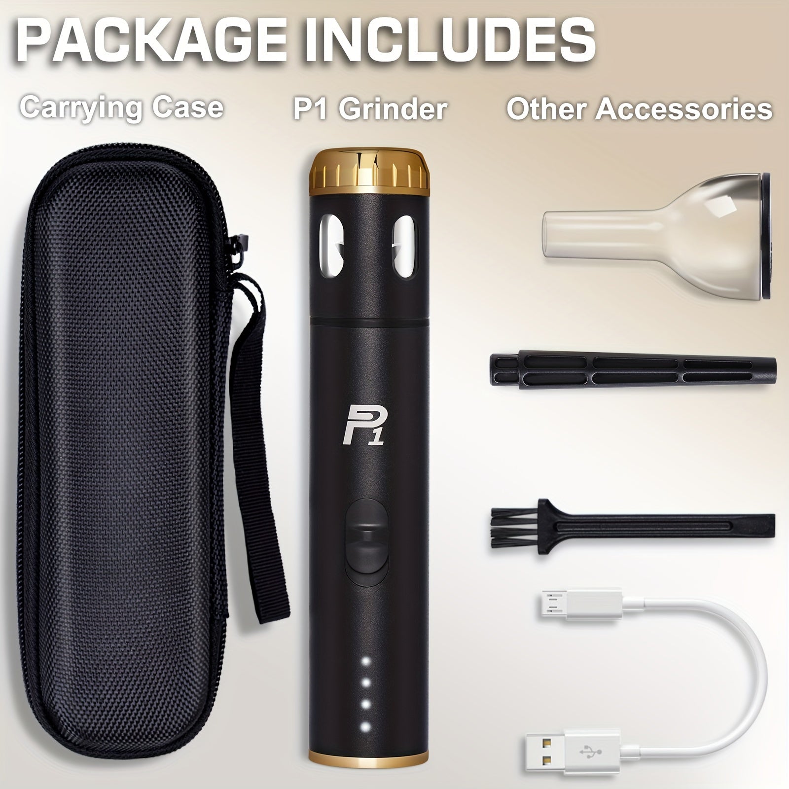USB Rechargeable Electric Tobacco Herb Grinder 1pc with Quick Grinding, Cone Loader, Portable Storage Bag Included - Smoking Accessories